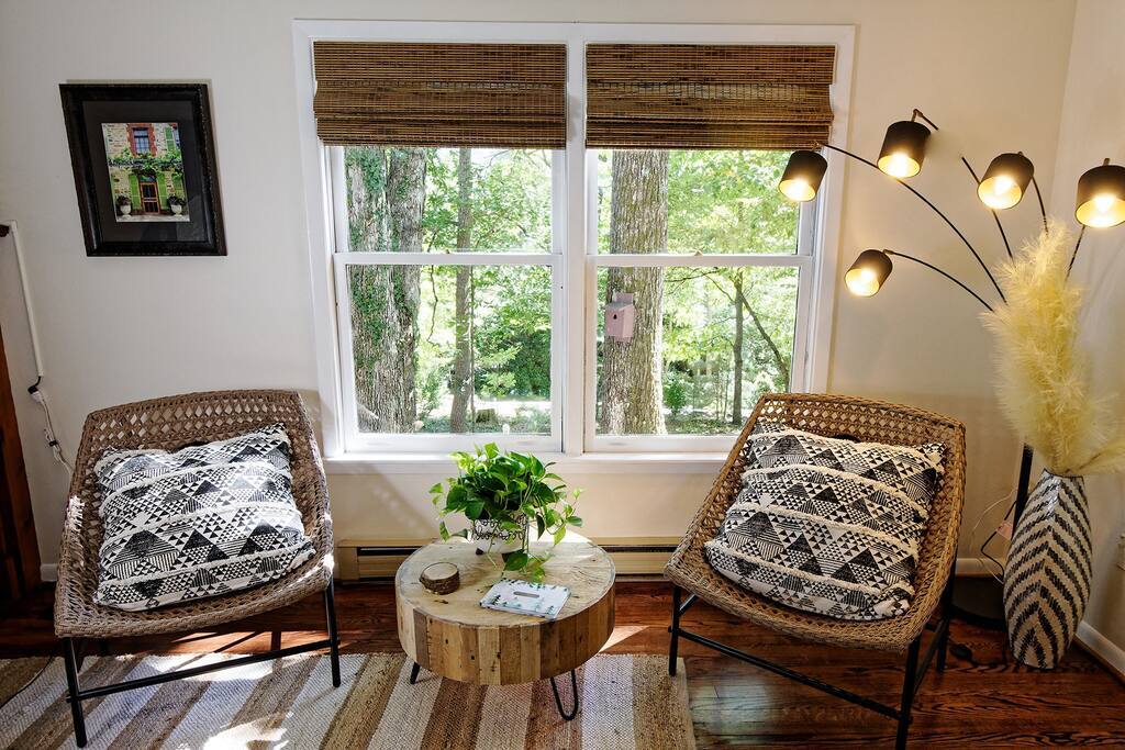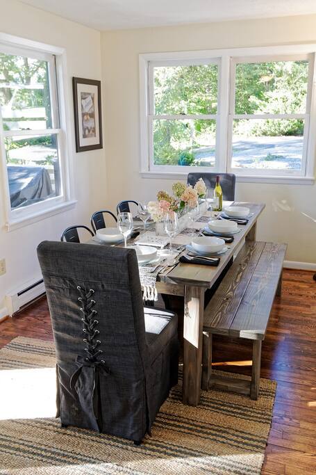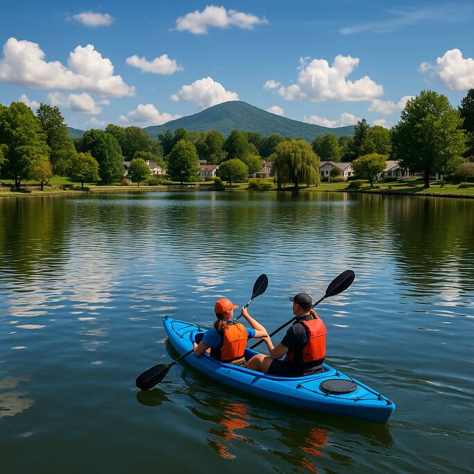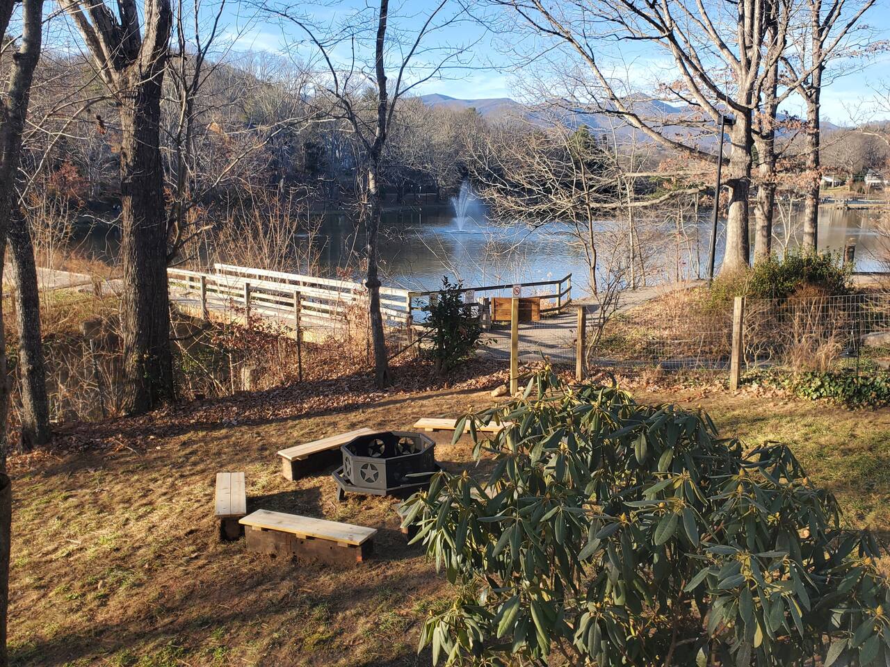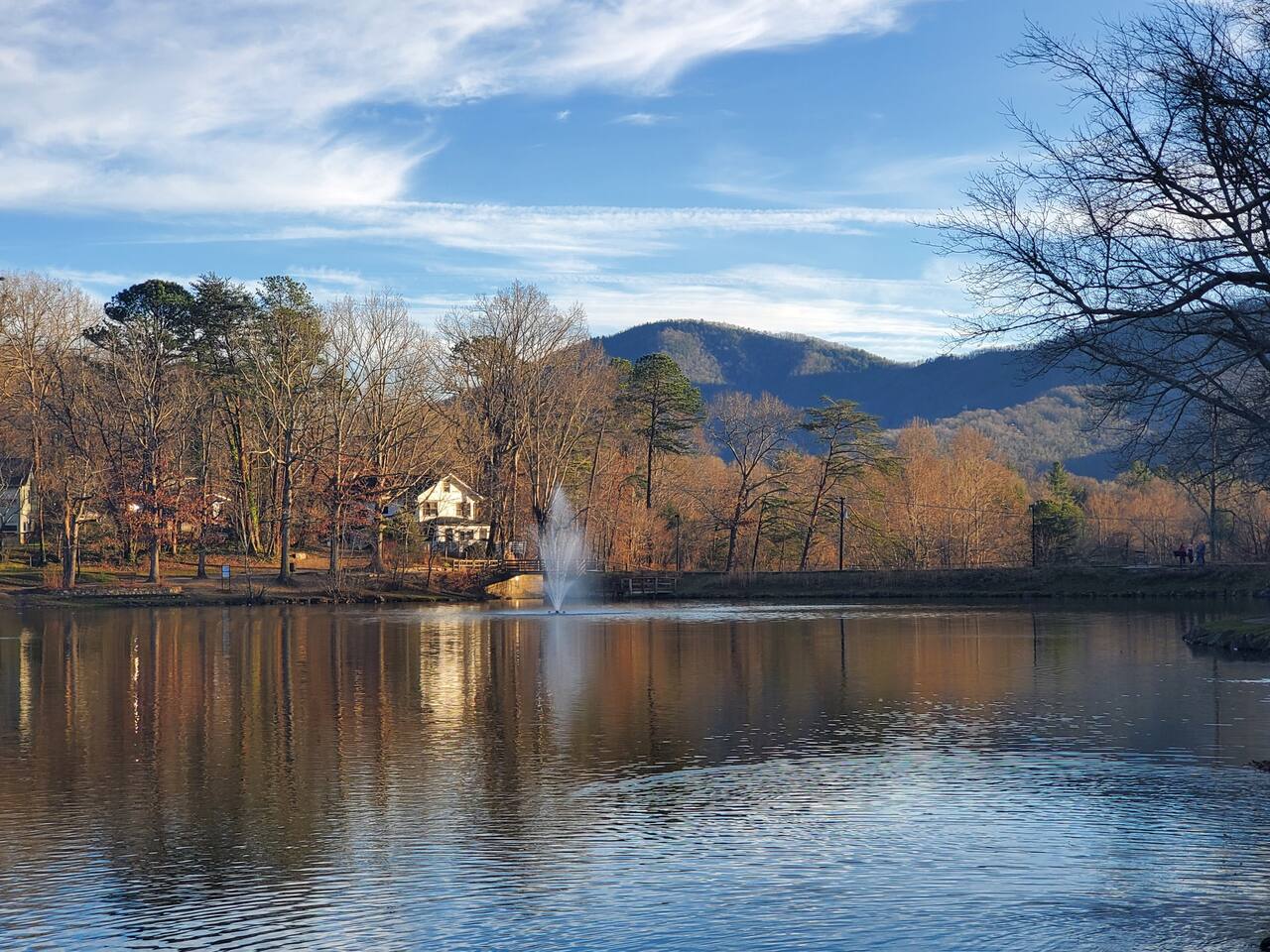 This home is located in Black Mountain, North Carolina--named by Trip Advisor as the "Prettiest Small Town in America." At this serene lakefront location you will have access to many of Asheville’s most visited sites, such as Chimney Rock, Lake Lure, Mt Mitchel, the Smokey Mountains, the Appalachian Trail, and the Blue Ridge Parkway. Even more amazing is that this nearly 100-year old lake house is only 60 steps to the shoreline of Lake Tomahawk! Views abound out various windows of the home, as well as from the sprawling and comfortable tree-lined patio. This location is nothing short of perfect and there is nothing else like it for rent in Black Mountain! Breathtaking mountain scenery is all around you in Black Mountain. Whether you choose to stroll or jog around the lake on the path directly outside the home (.55 miles round trip), you will have access to endless activities for any age group, especially children. Join local kids on the playground, swim in the Black Mountain Community pool (closed till spring), play basketball and tennis on multiple courts, or stop by the community center to check out activities. You can also schedule a tee time at the adjacent Black Mountain Golf course or sign up with them for croquet. Never worry about the sound of power boats ruining your relaxing barbecue, as this lake is large enough to welcome an occasional kayaker or paddle boarder, but not big enough for motor boats (swimming in the lake is not allowed) . With the backdrop of the Seven Sisters Mountain range reflecting in the lake on a clear day, ducks or geese and their babies can always be spotted from park benches while sounds of concerts often fill the summer air. Remote control sailboat races usually take place every weekend in the warmer months. Watch the leaves change in the fall or delight in the spring blossoms as they wake the area after the snow and ice covered the lake during winter.